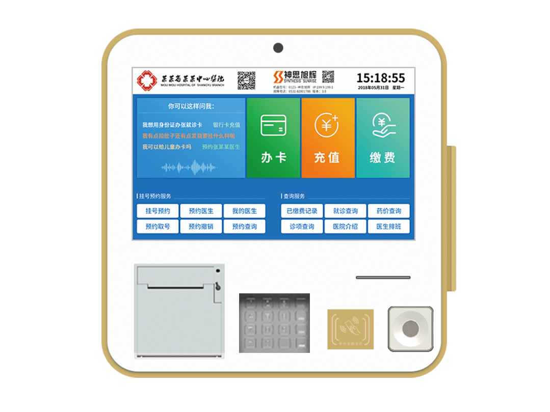 液晶显示:支持就诊人员信息、医生信息、医院公众号、支付信息显示